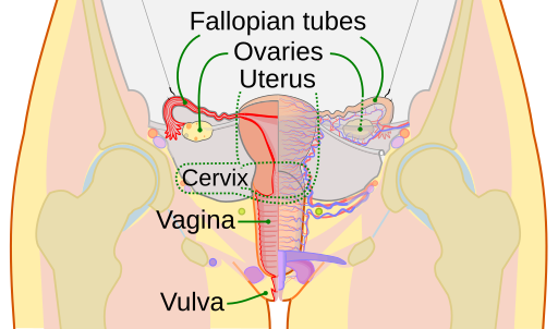 - Zervix – Übergang zwischen Vagina und Gebärmutter; enthält ein dichtes Geflecht aus Faszien-, Lymph- und Nervenstrukturen.